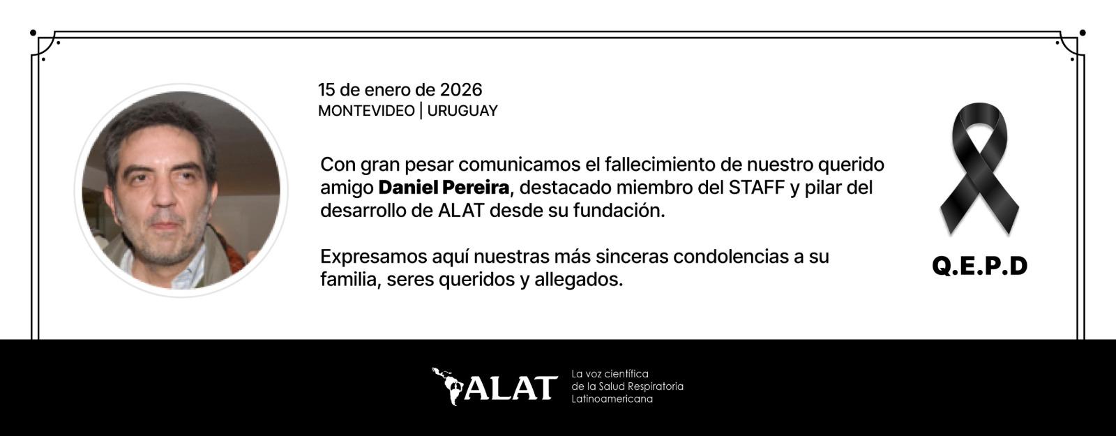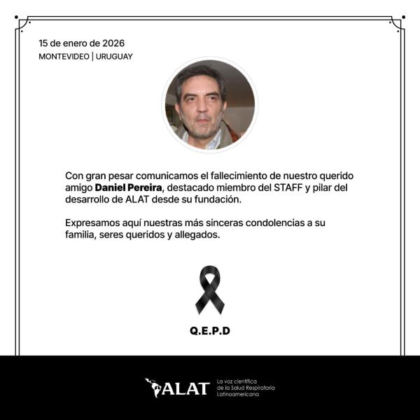 La Asociación Latinoamericana de Tórax (ALAT) está de luto por el fallecimiento Daniel Pereira, Coordinador de Comunicación e Imagen de ALAT.