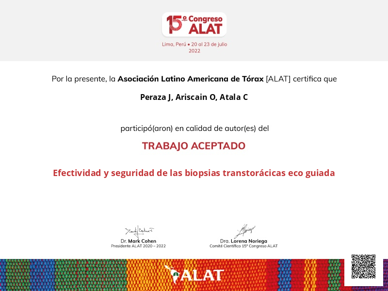 Título: Efectividad y seguridad de las biopsias transtorácicas eco guiada