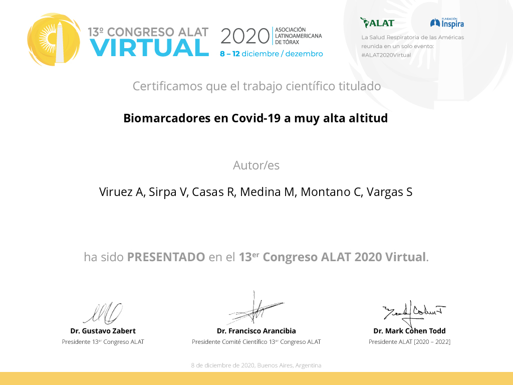 Título: Biomarcadores en Covid-19 a muy alta altitud