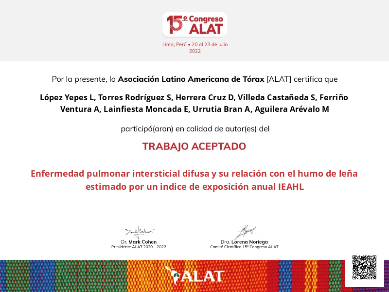 Título: Enfermedad pulmonar intersticial difusa y su relación con el humo de leña estima...