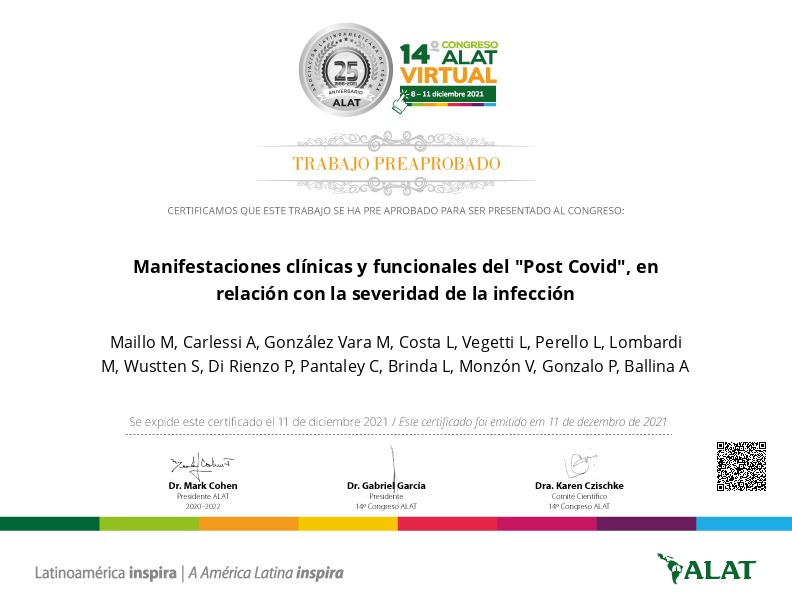 Título: Manifestaciones clínicas y funcionales del "Post Covid", en relación con la seve...