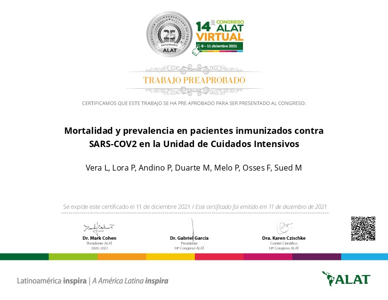Título: Mortalidad y prevalencia en pacientes inmunizados contra SARS-COV2 en la Unidad...