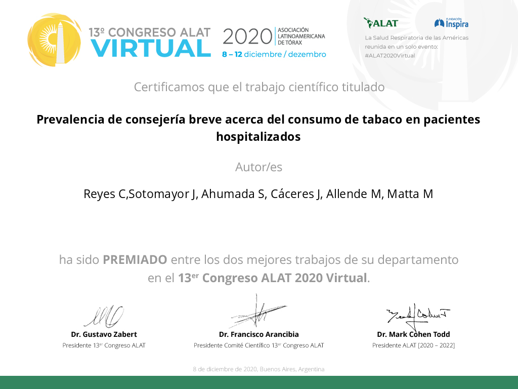 A nombre de: Reyes C,Sotomayor J, Ahumada S, Cáceres J, Allende M, Matta M
