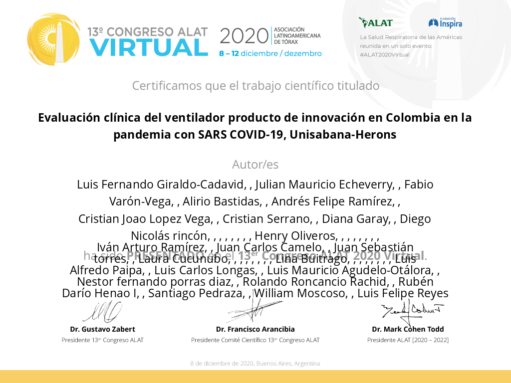 Título: Evaluación clínica del ventilador producto de innovación en Colombia en la pande...