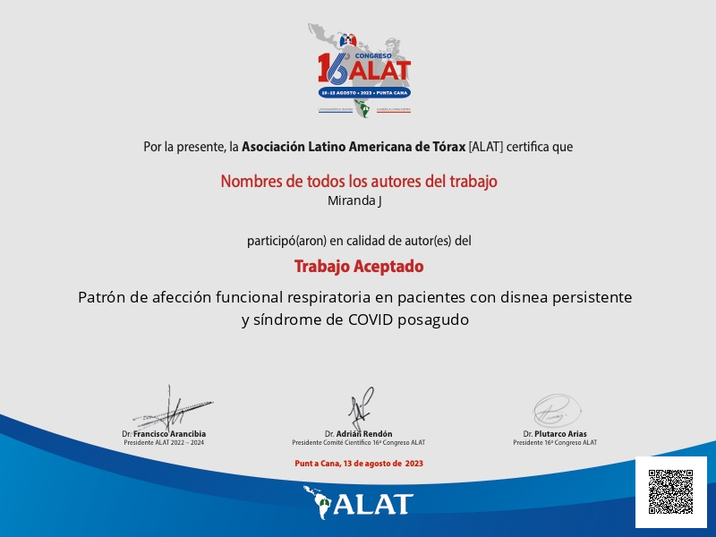 Título: Patrón de afección funcional respiratoria en pacientes con disnea persistente y...