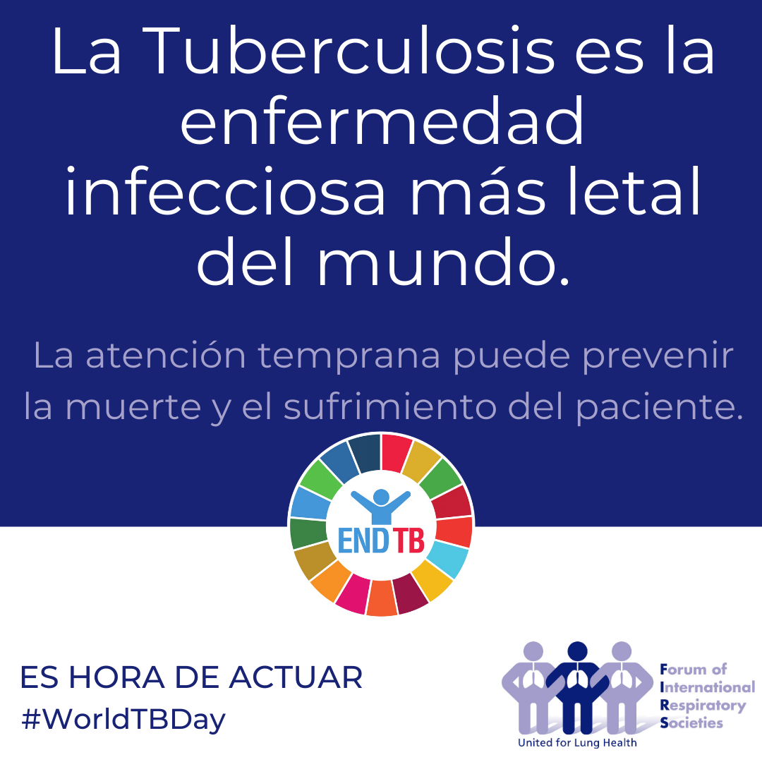 En apoyo al Día Mundial de la Tuberculosis, que se celebra el 24 de marzo, el Foro Internacional de Sociedades Respiratorias (FIRS por sus siglas en inglés), del que la ALAT es miembro fundador, se une a la campaña de la Organización Mundial de la Salud (OMS) para que los gobiernos cumplan con los compromisos contraídos para poner fin a la tuberculosis.
