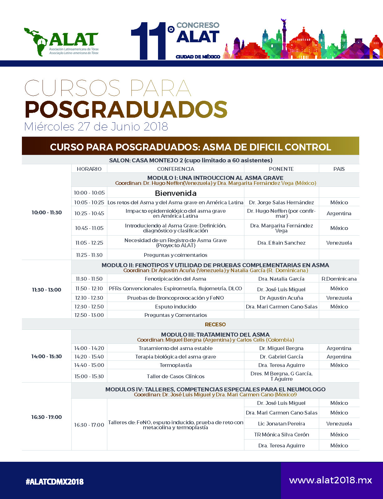 #ALATCDMX2018Inscríbete hoy en los Cursos para Posgraduados, visita el programa completo y elige tu mejor opción, quedan pocos cupos disponibles.