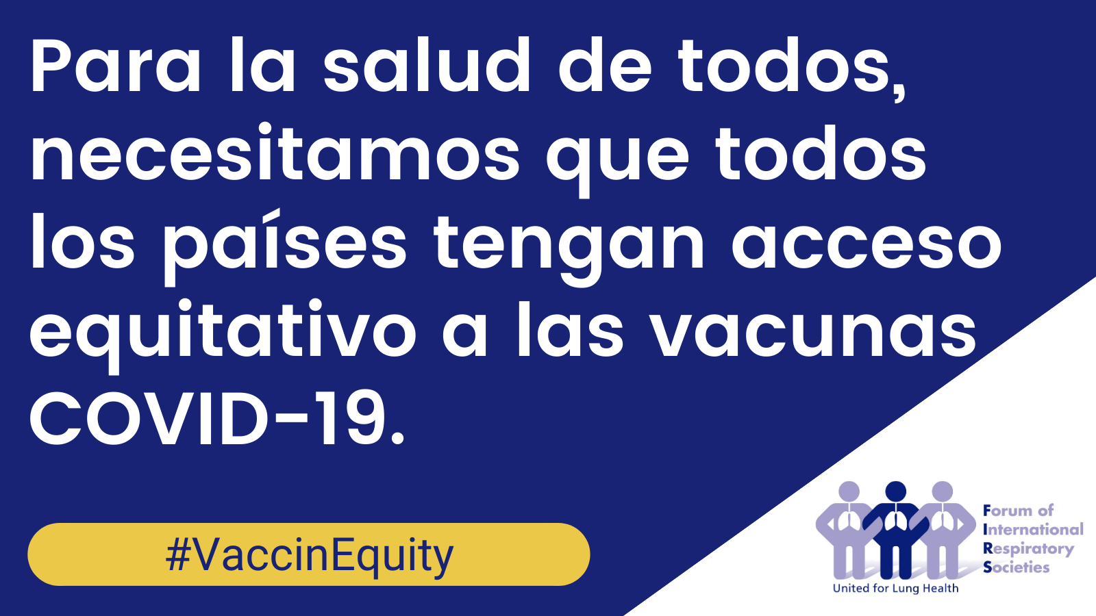 31 de marzo, 2021 – El Foro Internacional de Sociedades Respiratorias (FIRS por sus siglas en inglés), una organización compuesta por las sociedades respiratorias internacionales líderes del mundo, publicó en el día de hoy un artículo que destaca la eficacia y seguridad de la vacuna COVID-19 exhortando con urgencia el acceso equitativo a todos los países.