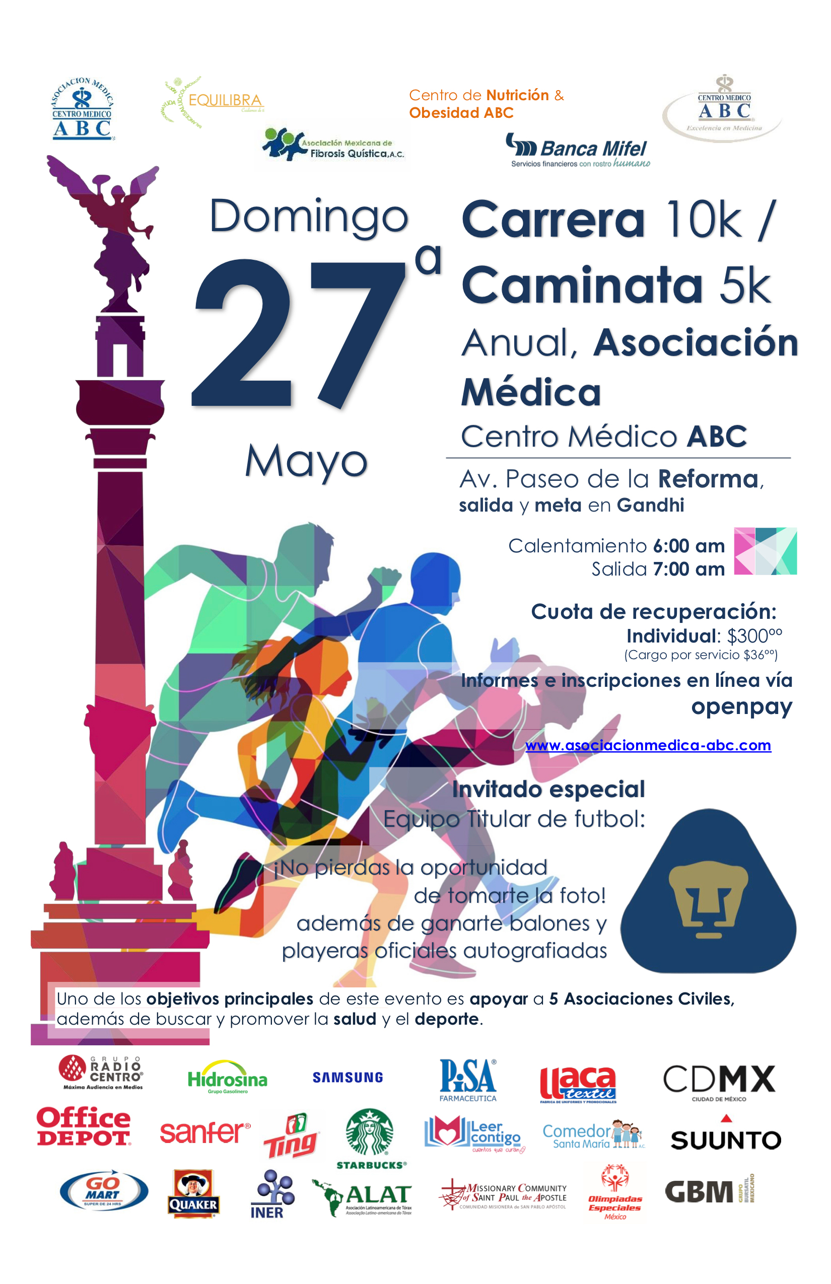 Carrera 10k / Caminata 5 k Anual de la Asociación Médica Centro Médico ABC.