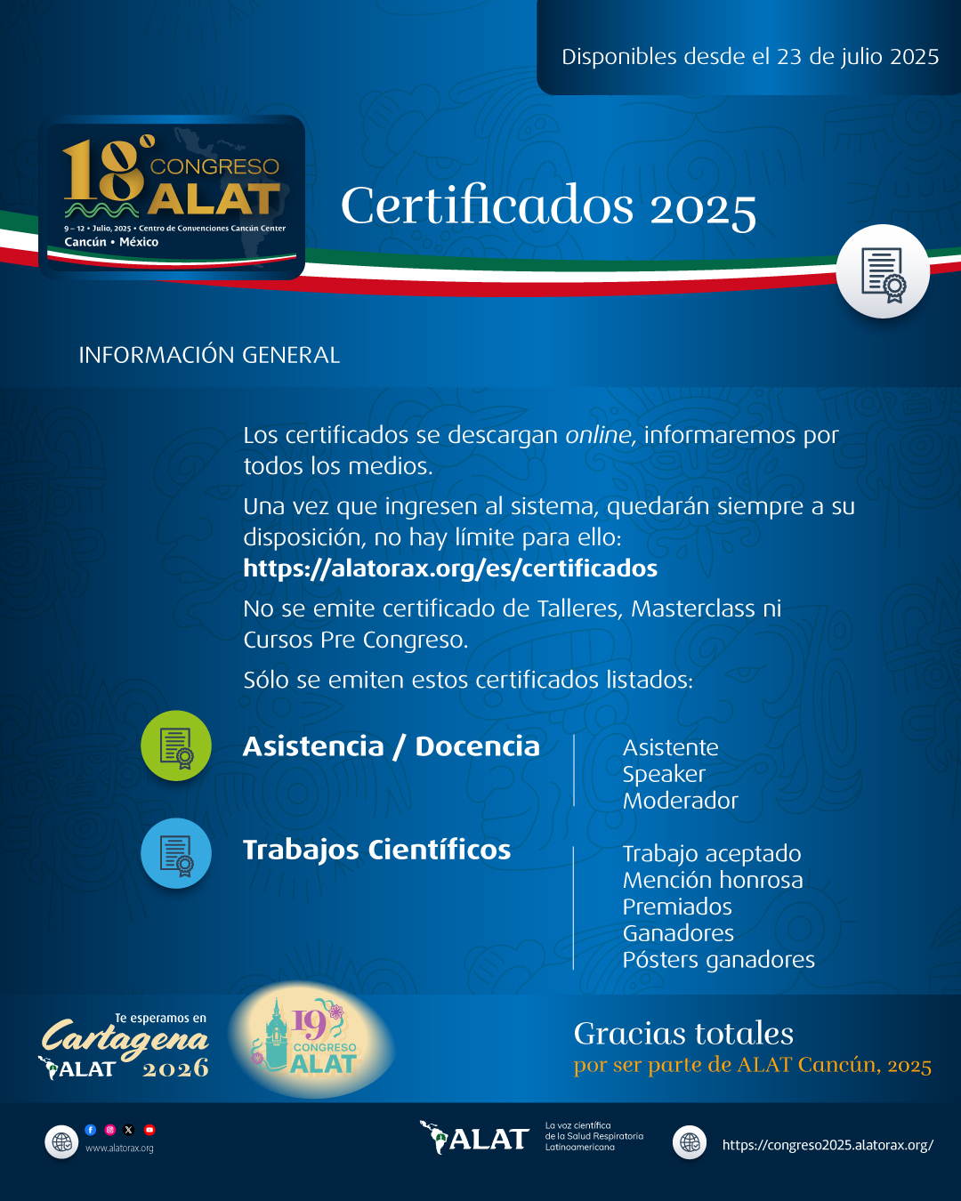 Certificados del 18º Congreso ALAT, Cancún 2025