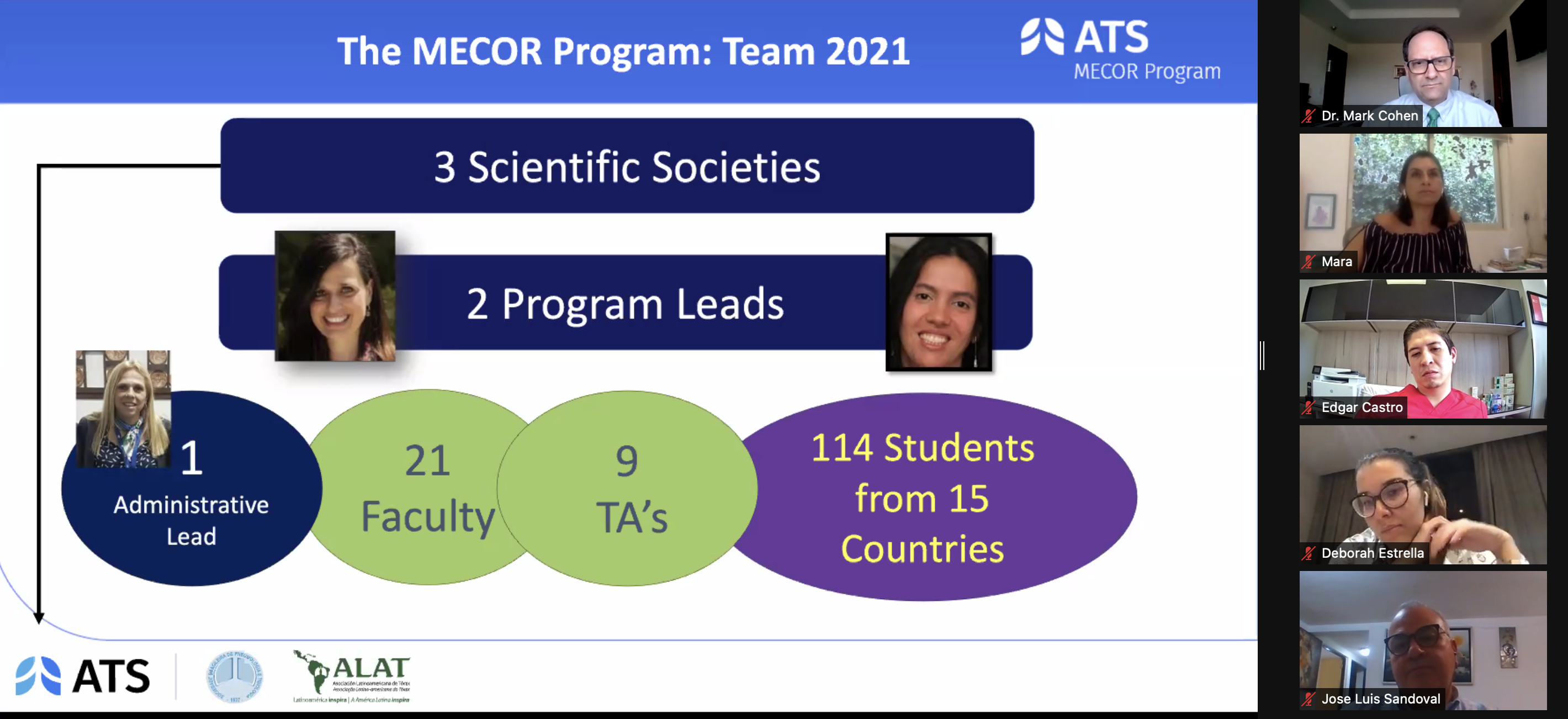 El día 6 de octubre oficialmente dió inicio el Curso Mecor 2021, con las palabras del Dr. Mark Cohen, Presidente de ALAT y con la presencia de los representantes de las Sociedades de Latinoamérica que forman parte del Comité Rector , la Mesa Directiva de la ATS , así como alumnos y profesores de toda la región.